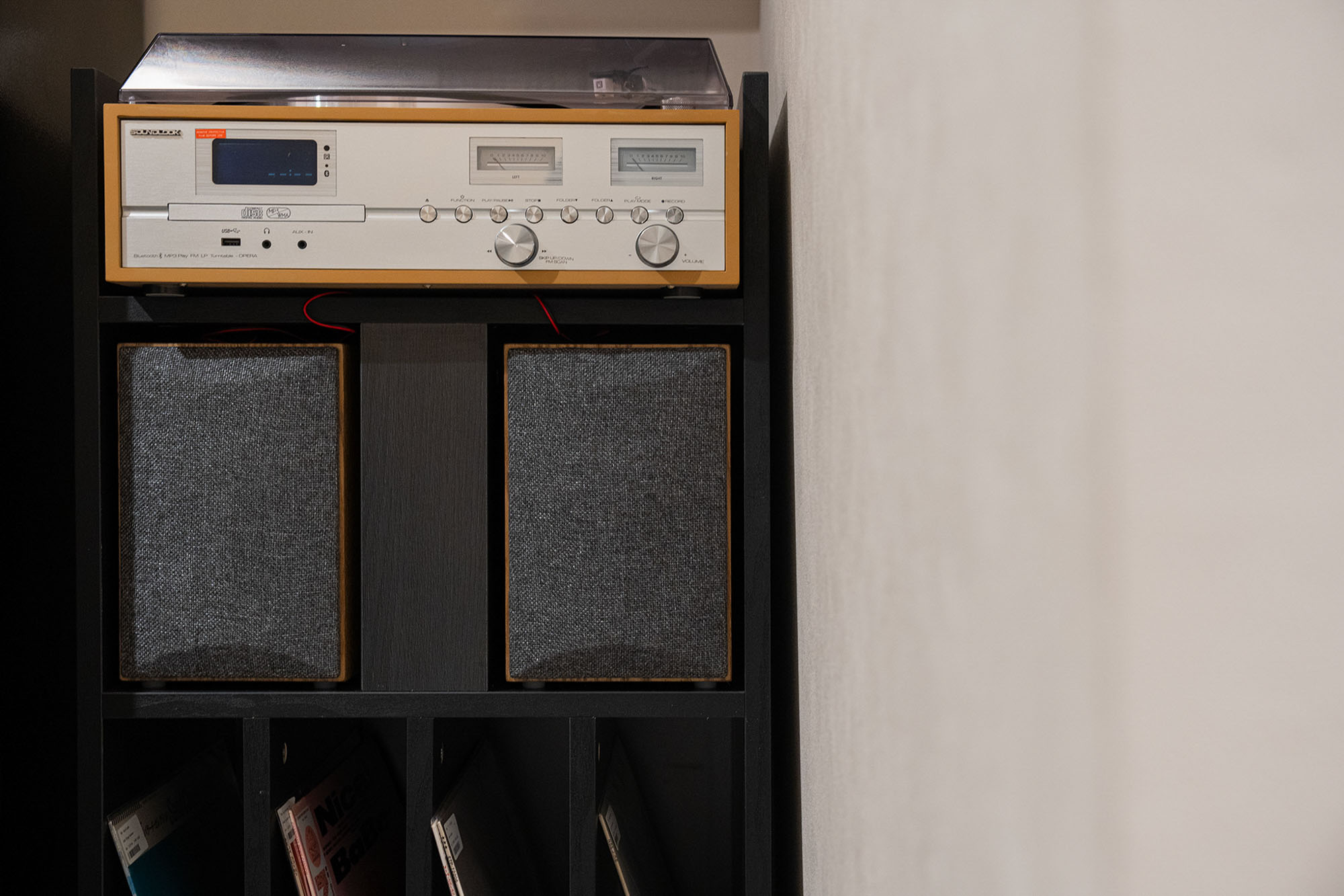 주방, 빔프로젝터, 만화책, 턴테이블, LP