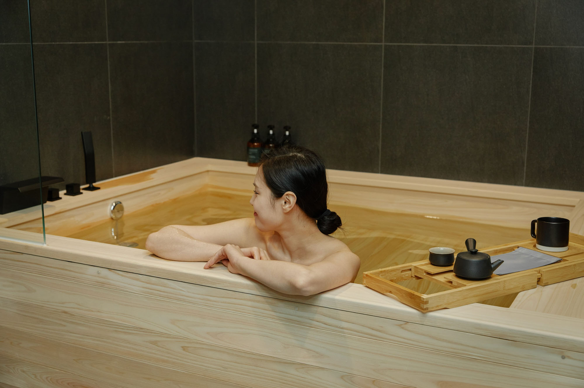 피로를 녹여줄 따듯한 히노끼 탕에