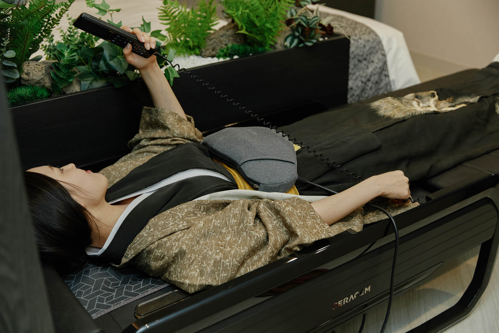 편안한 마사지 의자에 누워